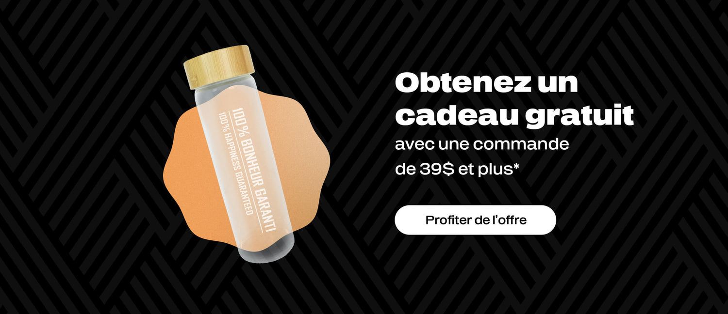 Profiter de l'offre* Cette promotion est valide sur les transactions de minimum 39$ avant taxes. Une seule utilisation par transaction. L’offre ne peut être jumelée à une autre promotion ni à un rabais fidélité. La bouteille gratuite est vide et sera ajoutée automatiquement aux paniers admissibles.